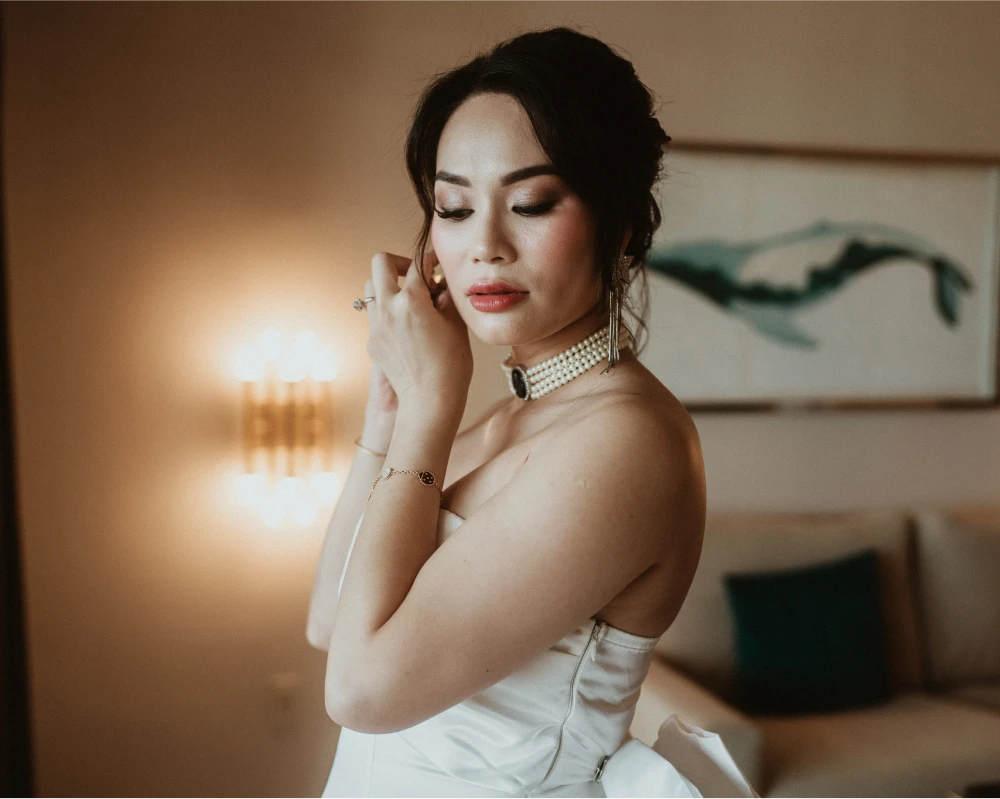 Artistic wedding photography is a wedding photography service with a unique style that reflects the personal touch of the couple. Artistic wedding photos are often taken with unusual camera angles, sophisticated lighting, and striking composition, helping to enhance the couple's beauty and express their love story.